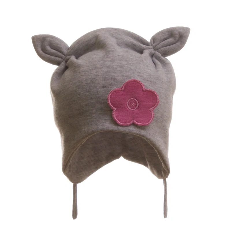 Čepice dětská zavazovací Rohatá s kytičkou MKcool C00211 melír šedá 00