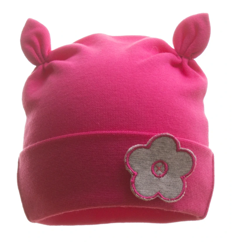 Krásná dívčí čepička saporka s oušky ozdobená kytičkou